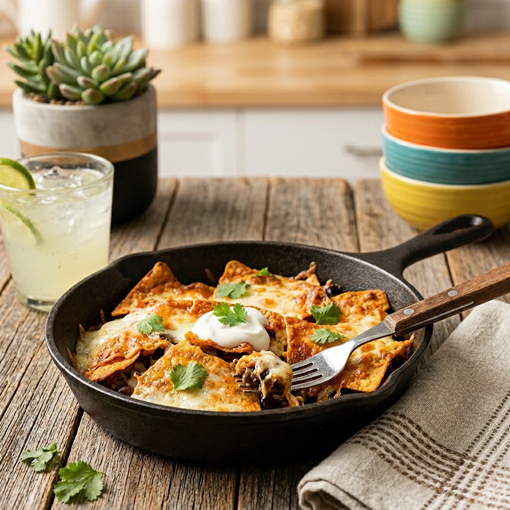 Top with your preferred garnishes: sour cream, sliced jalapeños, black olives, chopped green onions, fresh cilantro, or additional salsa.