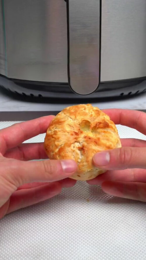 Cooking: Air fry at 360°F for 10-12 minutes until the dumplings are golden brown and crispy on the outside. The biscuit dough should be cooked through and the cheese inside melted and gooey.