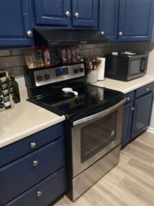 This range hood is seriously stylish and gets the job done. No more smoky kitchen or lingering cooking smells – plus, the lights are super bright!