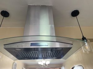 We searches for the perfect island range for some time and finally found this one by COSMO. Love the look. The lights are great… although we do wish they were dimmable. The fan has various speeds and pull the steam and odors without issue.