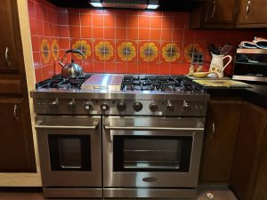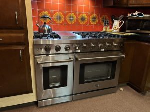 | Dimensions (HxWxD): 38.5″ x 48″ x 27.5″ | Number of Cooktop Burners: 6 + Griddle | Oven Cleaning Options: Manual Cleaning | Cooktop Control Type: Knobs |