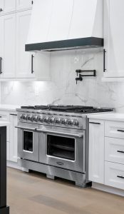 - Gas cooktop comes equipped with 8 sealed burners and griddle attachment, offering precision and control to cook a variety of dishes