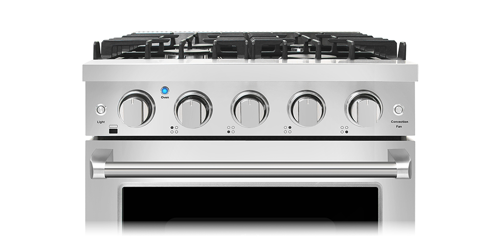 Professionally styled gas range constructed of corrosion resistant stainless steel, with bright mirror finished knobs, and a matching stainless steel oven door handle. Large oven window and oven light combines for easy monitoring of food and better overall visibility.