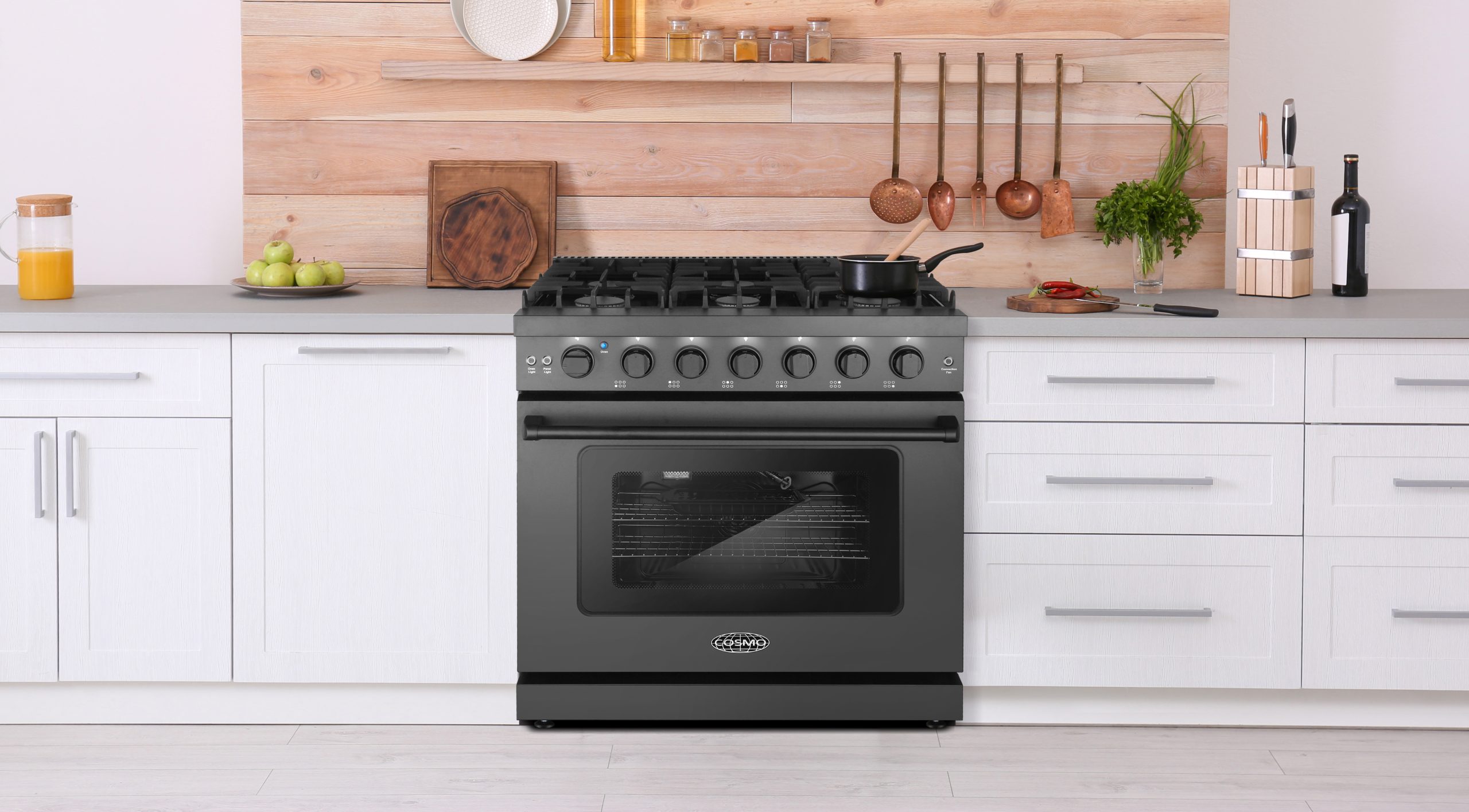 Cosmo’s COS-EPGR366-BK 36 in. gas range brings high end styling and quality into your home kitchen. The large 6.0 cu. ft. oven capacity lets you bake for a crowd and the gas cooktop with 6 sealed burners can handle all your pots and pans with ease. The cooktop is equipped with a variety of different burners to suit needs from the largest pots and pans down to the most delicate sauces: 2 x 18,000 BTU, 2 x 12,000 BTU and 2 x 9,000 BTU. In the rapid convection oven, powerful fans circulate air for fast, perfectly cooked meals every time. Our special oven functions give you the precision to create everything from juicy roasts to delicate desserts. Designed for durability, this 36 in. gas range is constructed with a matte black finish. A removable backsplash means this range is suitable for either freestanding or slide-in installation. The Cosmo Haven Collection brings enhanced functionality and design, offering a well-rounded option for those looking for more convenience and style in an appliance.