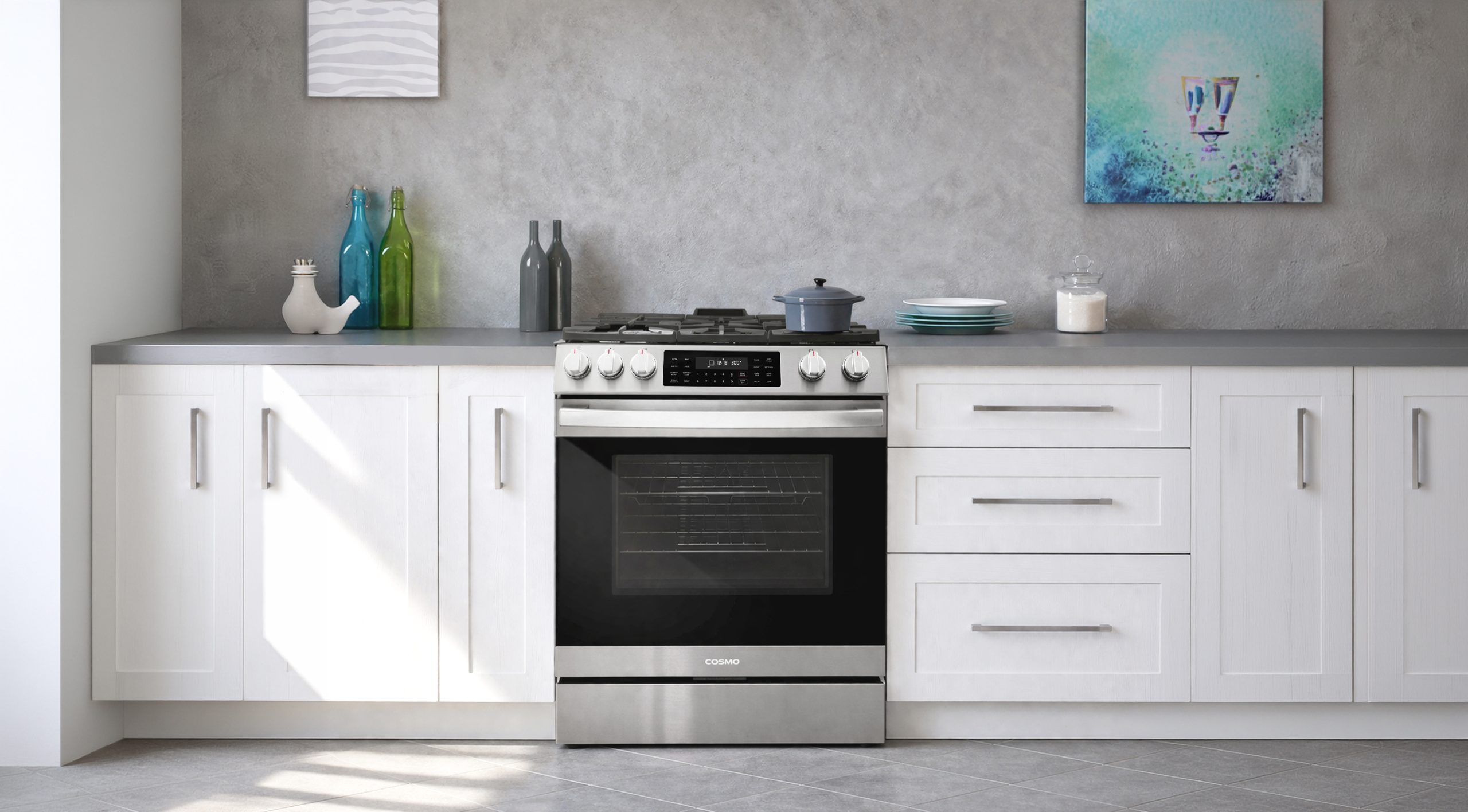 Elevate your kitchen with the sophistication of the Cosmo COS-GRC305KTD gas range. This 30 in. range brings high end styling and quality to any kitchen, with a seamless blend of functionality and aesthetics. Equipped with 5 sealed burners, you gain precise control over cooking temperatures. The expansive 6.1 cu. ft. convection oven enhances your cooking versatility, utilizing a fan to distribute heat evenly and cook foods faster. Select from a range of oven functions, including air fry, to cook your favorite dishes faster and with less oil than conventional frying methods. Crafted with heavy duty cast iron grates and industrial, corrosion-resistant stainless steel, this range ensures reliable and durable performance for your culinary needs. Make cleanup easy with the oven’s self-clean function, save time and energy in the kitchen. The Cosmo Lumin Collection brings enhanced functionality and design, offering a well-rounded option for those looking for more convenience and style in an appliance.