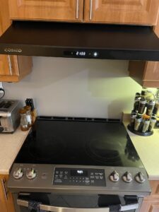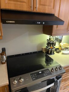 Upgrade your kitchen with the Cosmo COS-KS6U30-BK under cabinet range hood, designed to enhance your space with a modern and minimalist touch. The matte black range hood seamlessly integrates into your existing cabinetry. Enjoy efficient grease and cooking odor elimination with 3 fan speeds, all controlled with a digital soft touch control panel for convenience. Illuminate your cooking area with energy-efficient LED lights, ensuring clear visibility while you cook. Cleaning is simplified with easily removable, permanent, baffle filters, designed for unlimited reuse to save you money year-round. Includes a 3-prong power cord for installation. Trust Cosmo to deliver professional-quality kitchen solutions directly to your home at affordable, factory-direct prices.