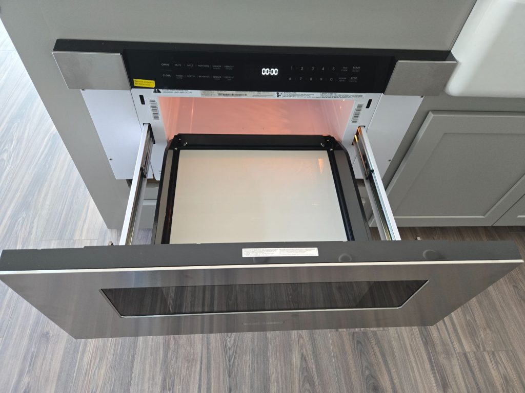 Our cosmo microwave drawer really looks good. We love the sleek look and how great it looks with our new cabinets.