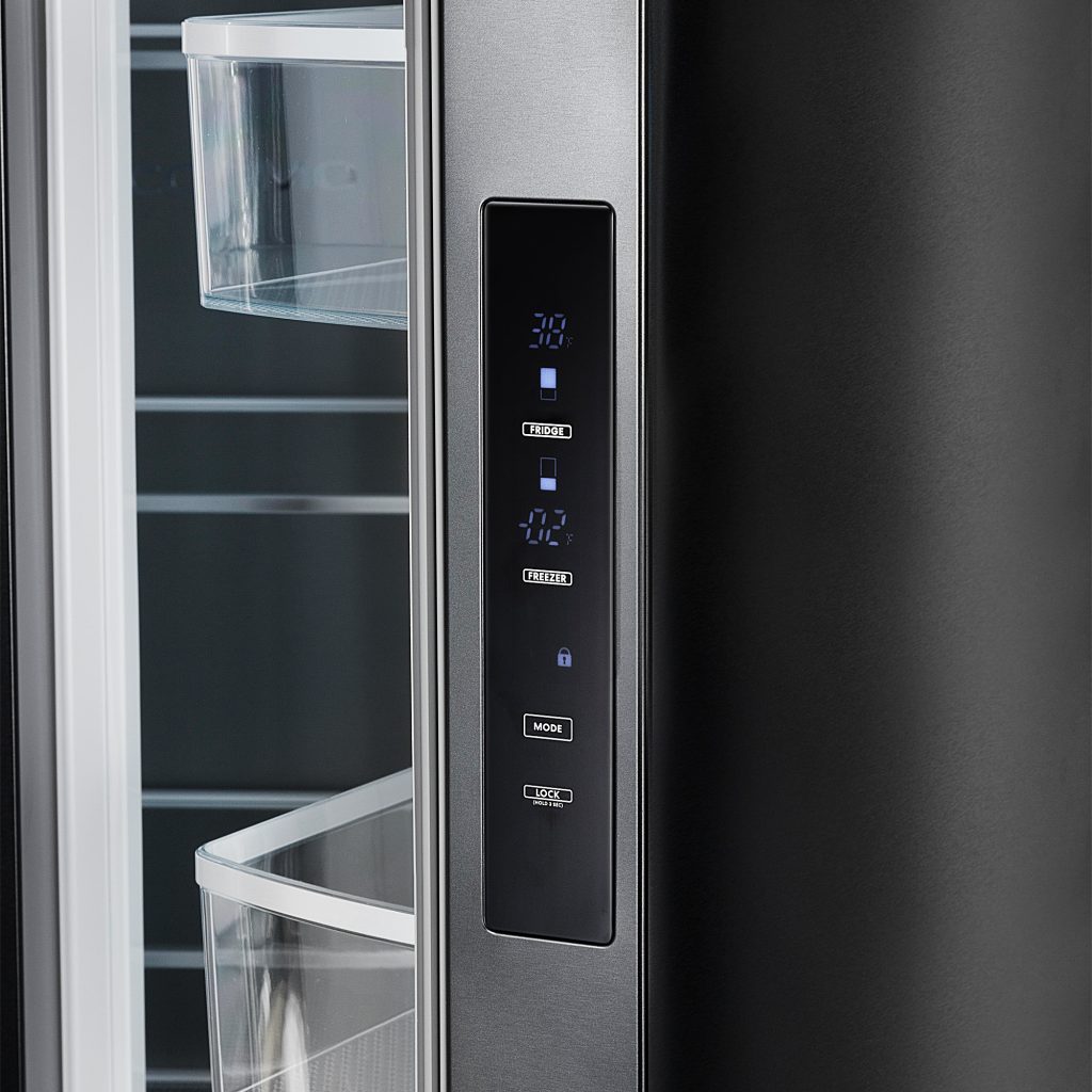 Easy-to-reach digital touch temperature controls for both the refrigerator and freezer.