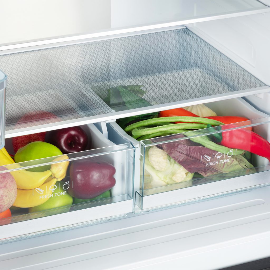- Fully enclosed crisper drawers help keep fruits and vegetables fresher for longer