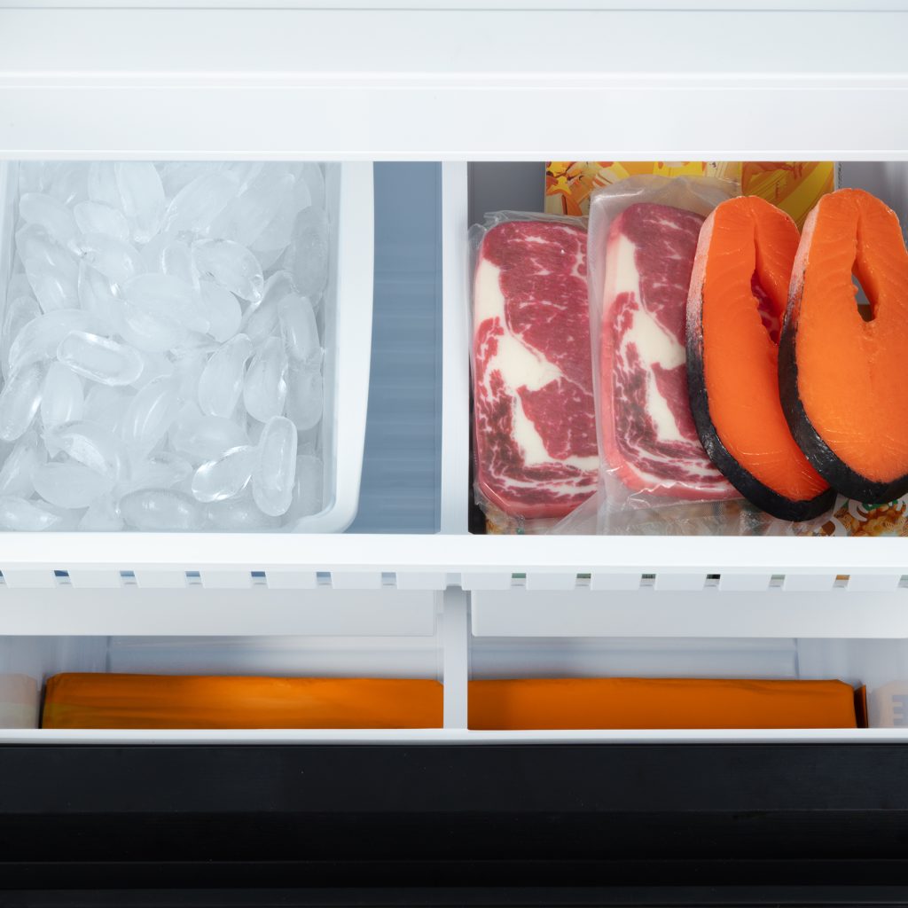 Pull out freezer drawer to easily store frozen food.