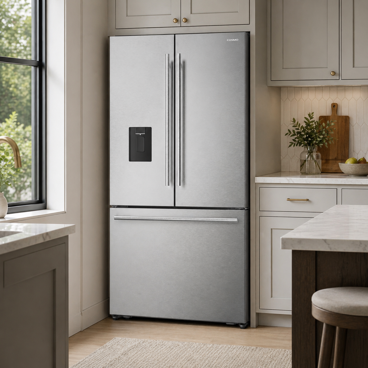 French door refrigerators with water dispensers solve the reaching-across-the-kitchen problem every time you want cold water. Built-in water access eliminates pitcher refilling and provides filtered water on demand.
